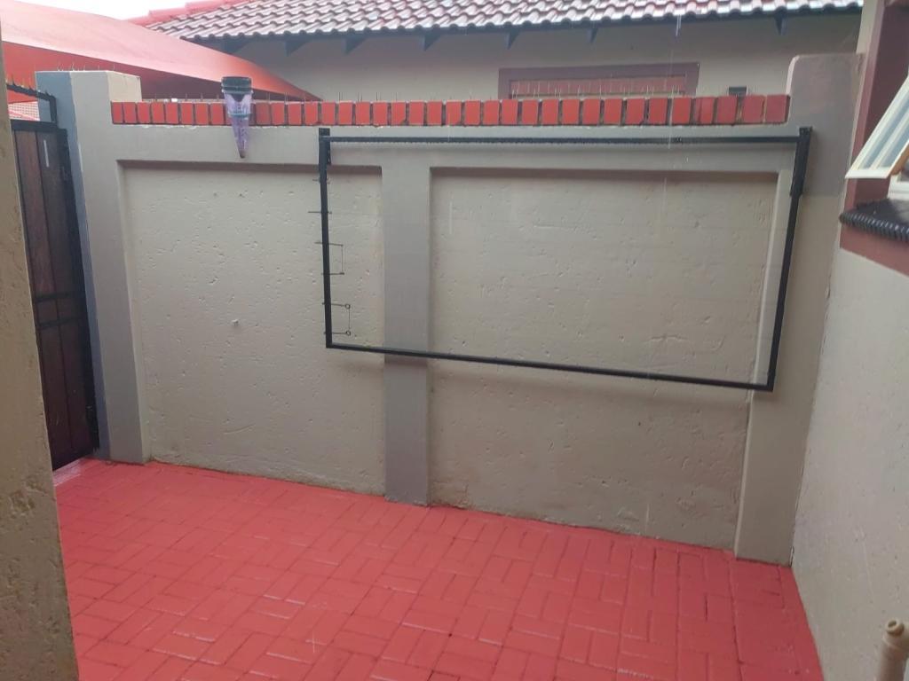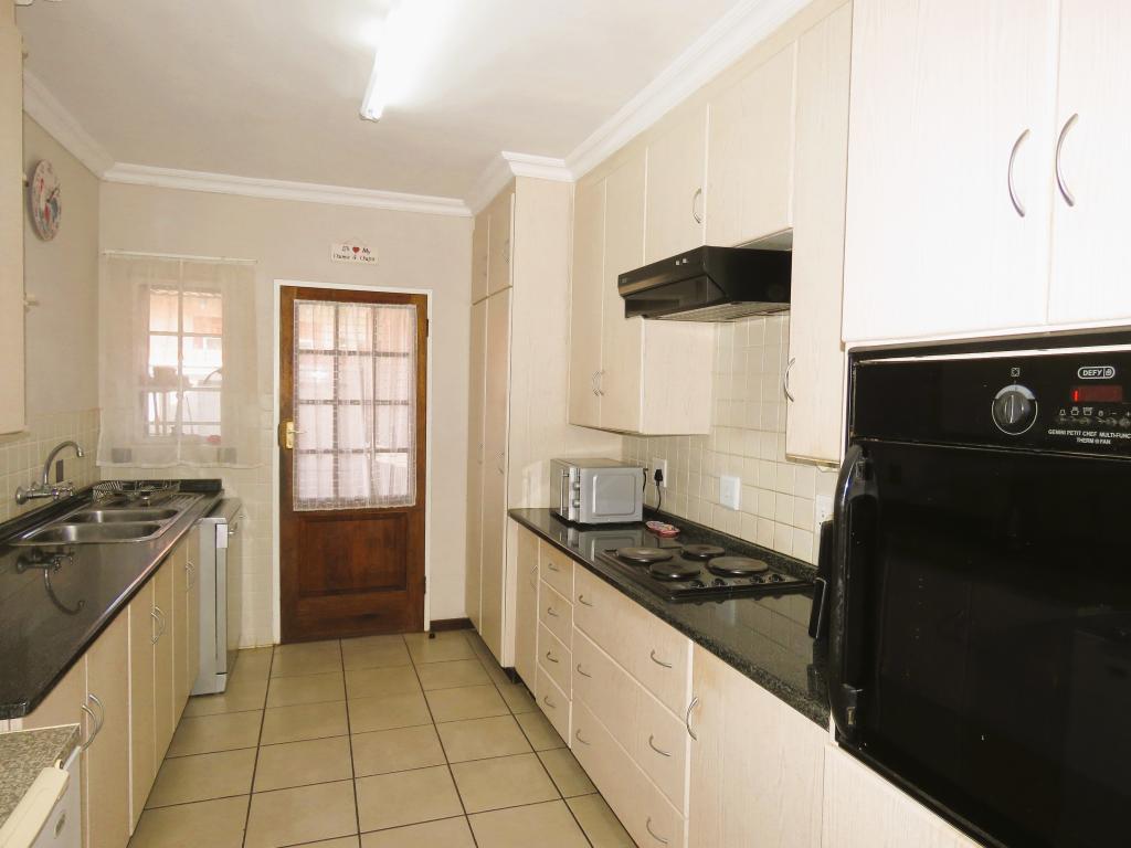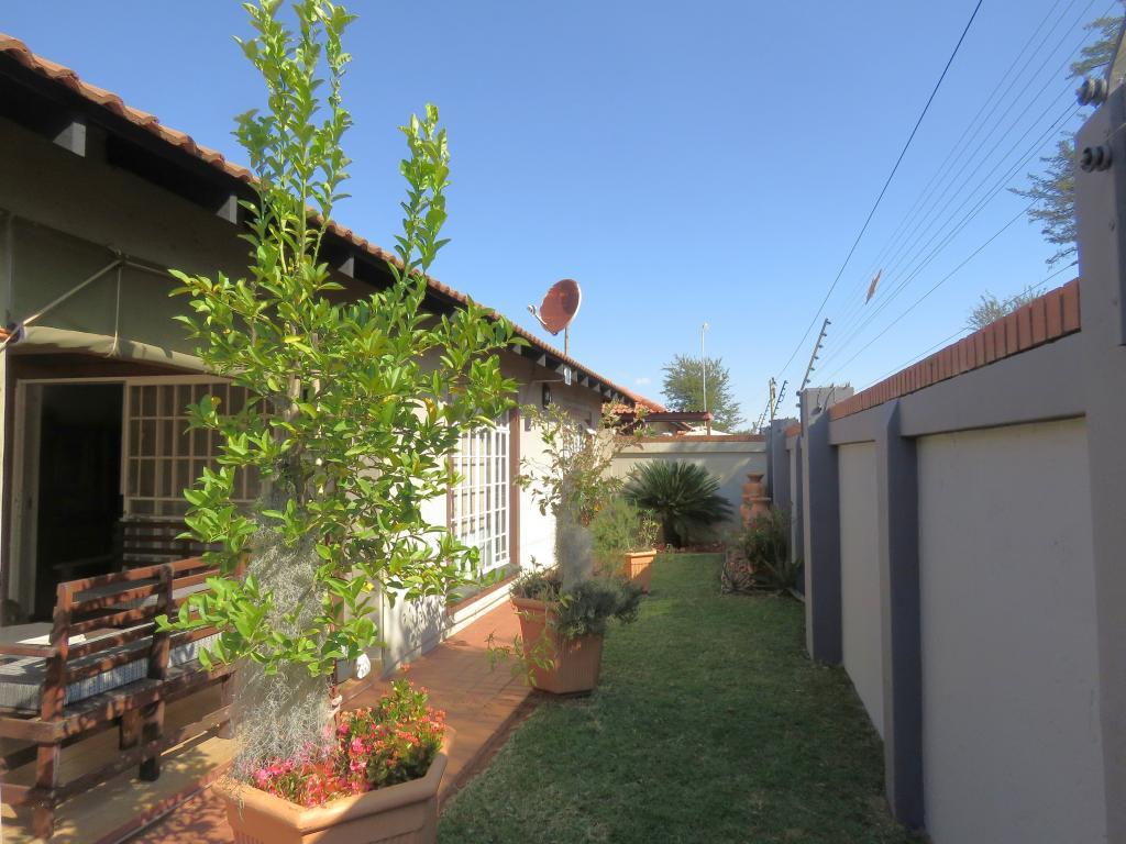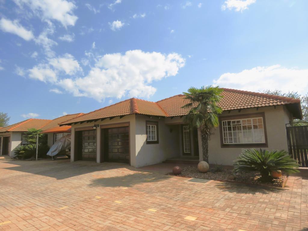 | Description: | Feel at home and safe in this charming complex with 8 lovely townhouses. Features include automated gate, Walls around complex and electric fence. The house, size 165 square m, is spacious and comfortable. The double garage is automated and with door to house, as well as laundry facilities. One covered parking and guest parking on premises. The erf is private at the back, with paving, shrubs and lawn Courtyard with basin and clothesline Water tank with pump.