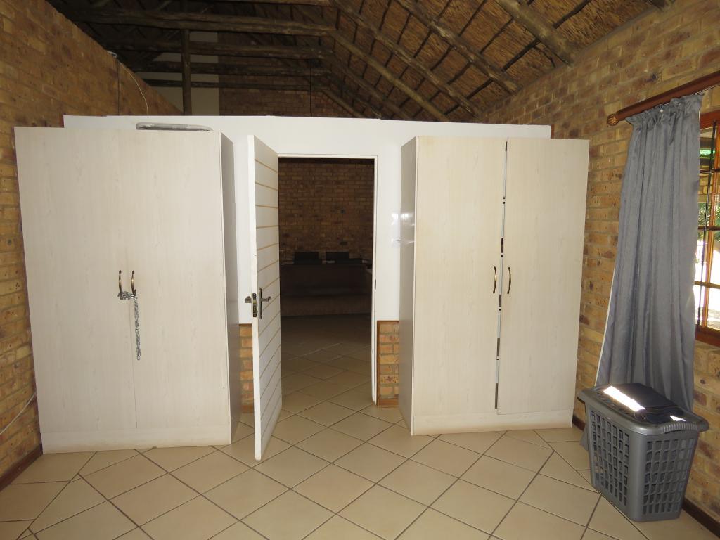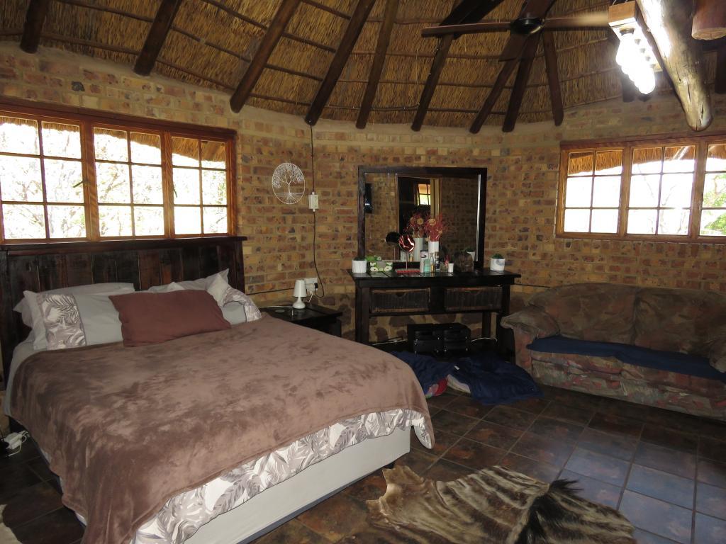 Wooden Cottage: one bedroom bathroom Wooden office outside: Water: Strong borehole with enough water for the garden, trees, and the game. Game: numbers may vary Blesbok 11 Impala 9 Nayala 3 Copper Wildebeest 6 Ostrich 7 Emu 2 European Bush pig crosses 40 The game viewer is also included in the price. Escom: There is a point The property is equipped with a 15 kva Solar system that is more than sufficient Then also a big shed that can be locked Fencing: Game fenced Pecan nut trees x 80 in production Enough Citrus trees The seller is not registered for VAT, so transfer duty will be payable This is a nice property with enough infrastructure, and it is maintained very well.