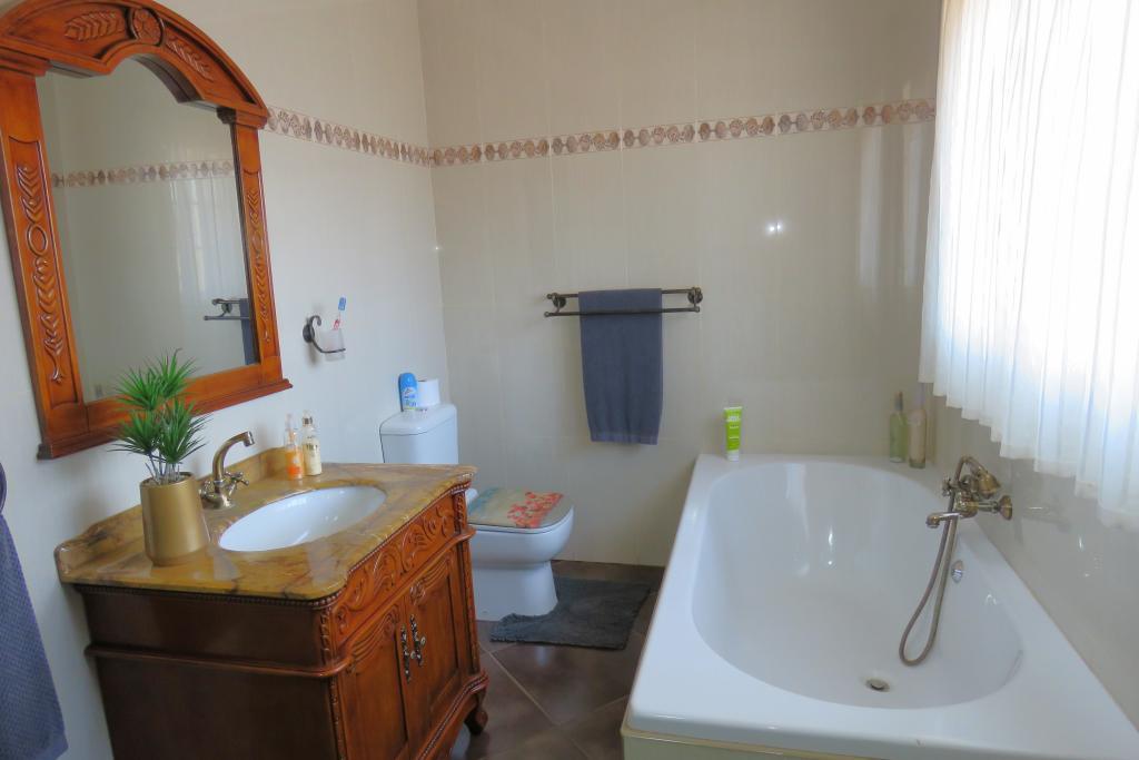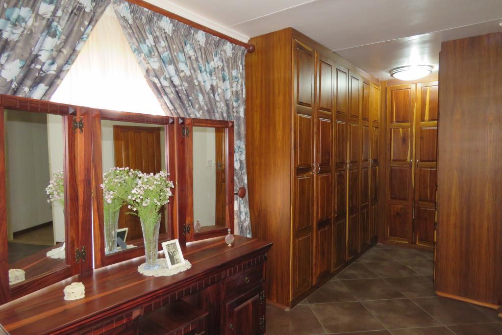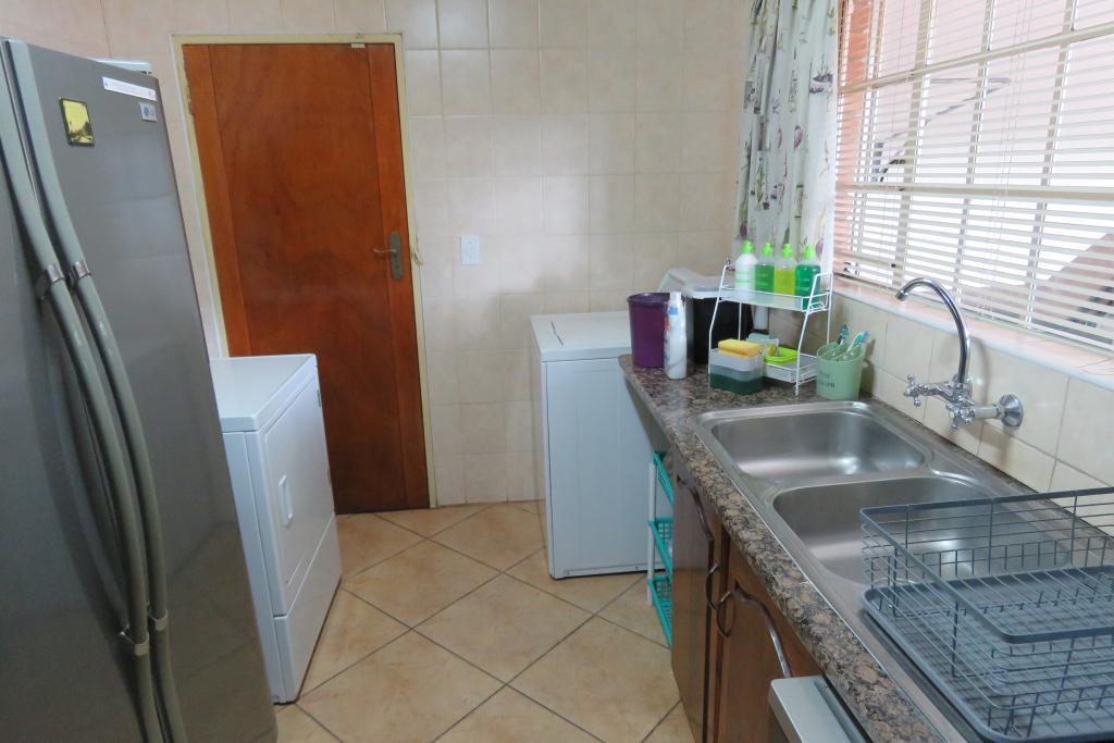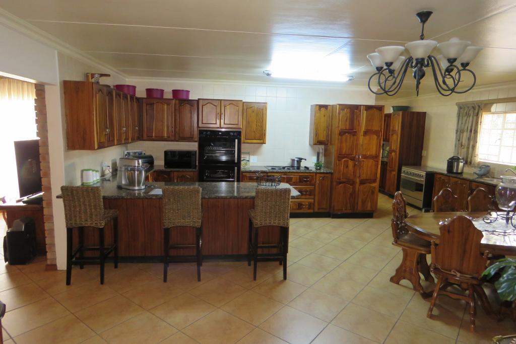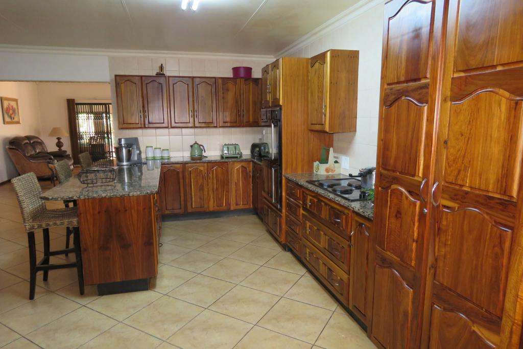 Kitchen boasts with African Teak wood (Kiaat) cabinets, granite tops, electric hob, double oven, scullery and laundry area