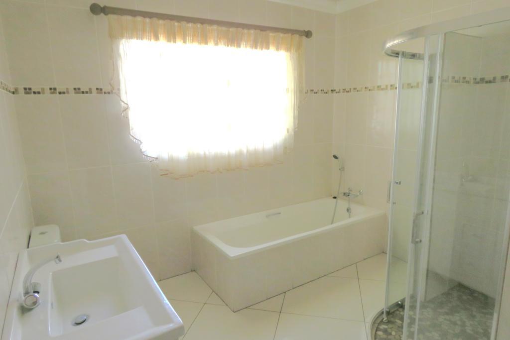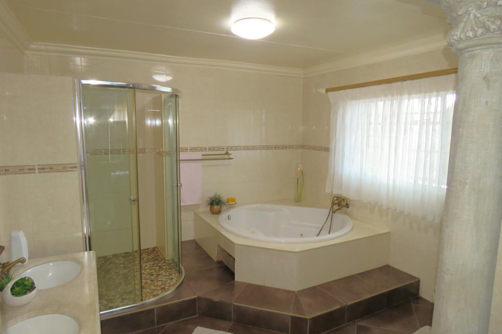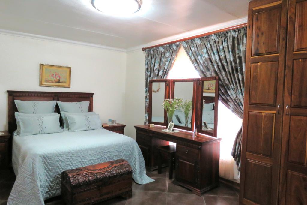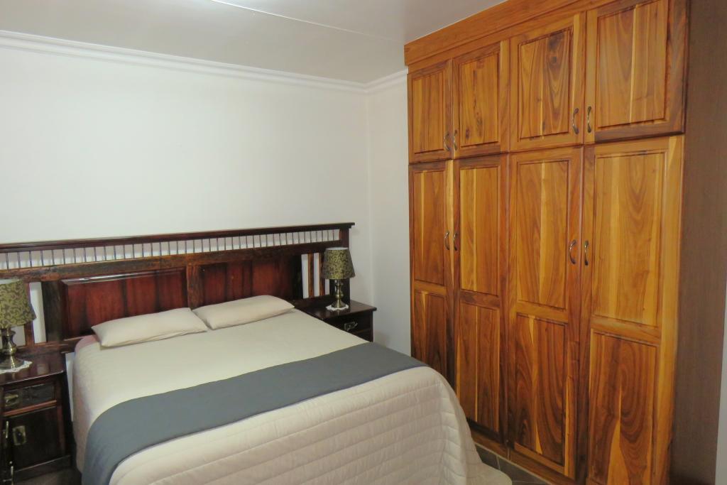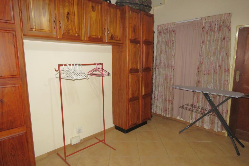 Kitchen boasts with African Teak wood (Kiaat) cabinets, granite tops, electric hob, double oven, scullery and laundry area