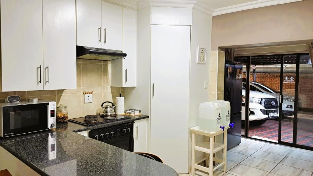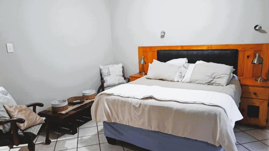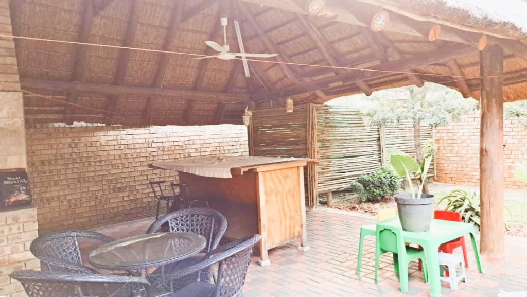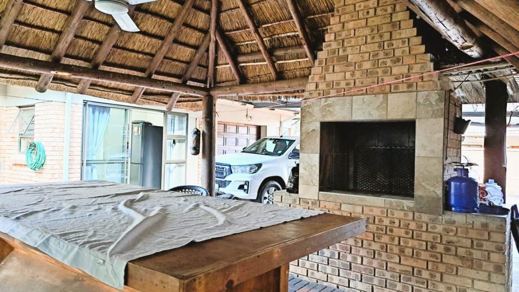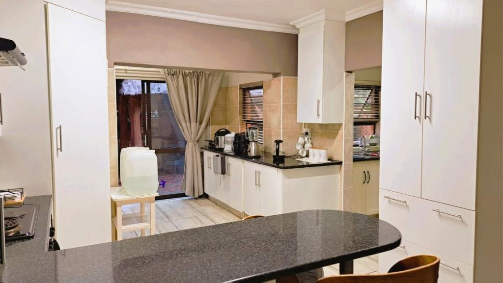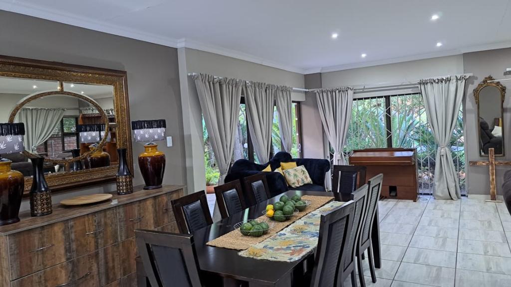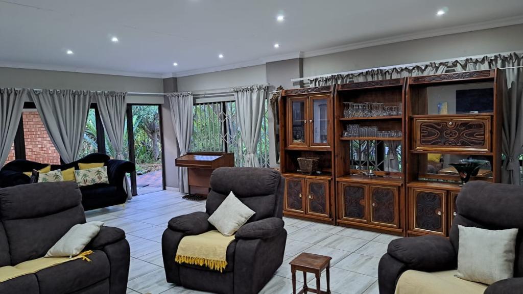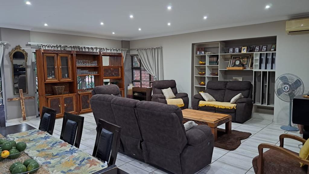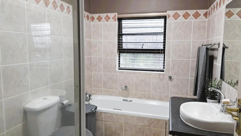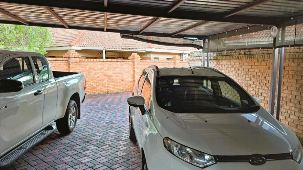 | Description: | Nestled in a popular safe complex, this stunning home offers privacy and comfort. The entrance is tucked away from the street, with gate and automated garage. The lush green garden is under irrigation with timer switch. Back-up water is provided with 3 tanks (2 x 2 500 l & a 1 000 l) Small, covered patio at the front entrance. The house will charm you from the moment you step into the spacious living area with down lights and wall to wall bookshelves This area flows into the modern kitchen, with breakfast nook, light cabinets, Defy Thermofan stove, extractor fan, granite tops and scullery 2 Guest bedrooms share a full bathroom The master bedroom will fit your king size bed and dressing table, with ample closets. En suite, full bathroom. Walled back-yard with lapa and braai. 1 Garage Carport for 4 vehicles Outside toilet. SPECIAL FEAUTURES Aluminium sliding doors with trelidor Security lights Beautiful linen cupboard in hallway 2 Air conditioners and ceiling fans Build-in cupboards. Outside toilet |